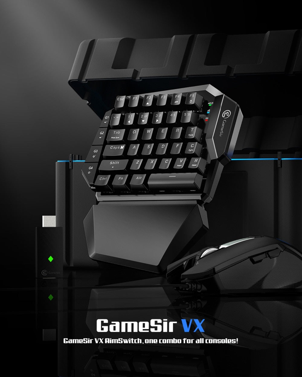 The combo contains GameSir VX E-sports one-handed gaming keypad, GameSir GM190 E-sports gaming mouse and 2.4GHz wireless dongle with GameSir exclusive Agility X technology. It is compatible with mainstream console platforms including Xbox One/PlayStation 4/PlayStation 3/Switch through stable original controller connection, providing accurate and instant keypad and mouse control.