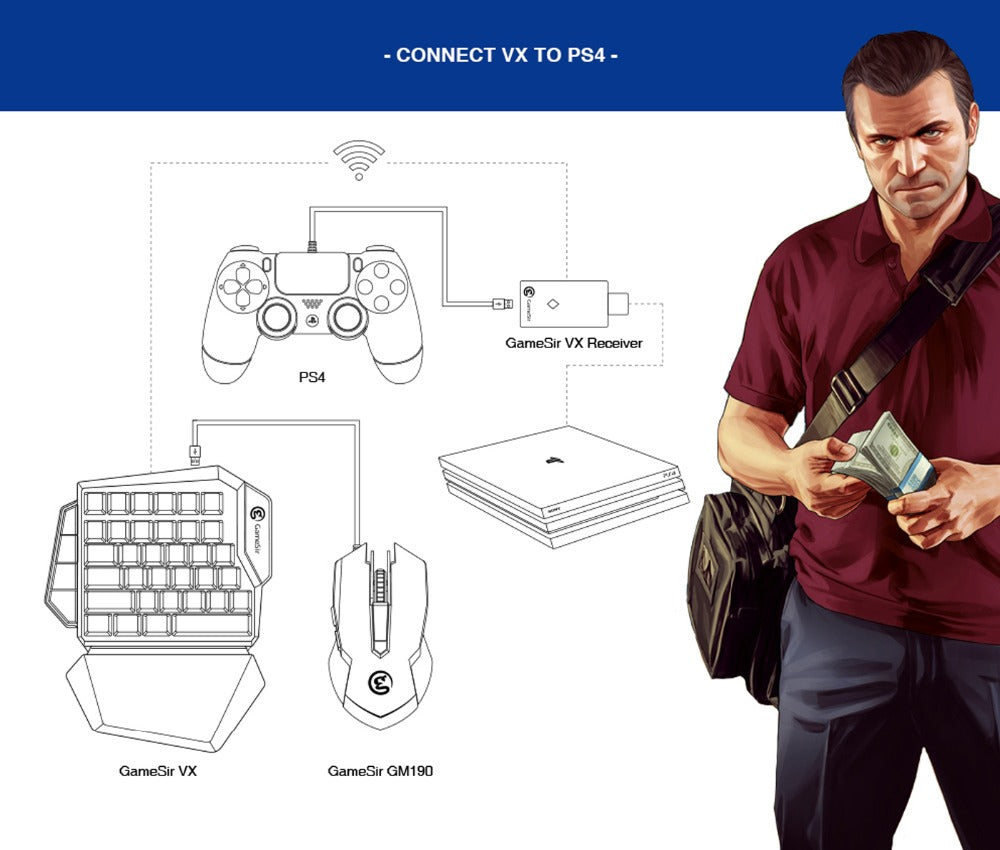 With characteristics of unsurpassed quality, ease-of-use, and flexibility, GameSir VX AimSwitch E-sports Combo is the perfect companion to the even most demanding gamer. Gamers all over the world with GameSir VX AimSwitch E-sports Combo can enjoy gaming with their friends on consoles while they use the input method that suits them best. Now you can enjoy multiple hot games like: Call of Duty: Black Ops 4; Red Dead Redemption 2; Battlefield 5; Fallout 76; Just Cause 4; Assassin's Creed: Odyssey; Anthem; Splatoon 2, Fortnite.